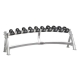 Одноуровневая подставка, на которой можно разместить до 5 пар гантелей, позволяет эффективно использовать пространство в тренажерном зале.