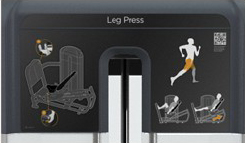 Инструкция На корпусе тренажера имеется информационный плакат с крупными графическими изображениями, наглядно показывающими правильный порядок выполнения упражнений, исходное и конечное положение, а также нагружаемые мышцы. Ссылка на обучающие видео доступна через QR-код. | Наклон сидения Расположенное под углом сиденье обеспечивает правильное распределение веса и помогает разгрузить коленные суставы. |