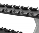 Подставка под хромированные гантели DBR813 компании PRECOR серии Discovery Beautybell Rack- 10 Pair имеют трехъярусную конструкцию и гарантируют практичное и бережное хранение десяти пар гантелей. Подставка для гантелей представляет серию Discovery, товары которой становятся отличным выбором для всех, кто ценит функциональность, лаконичность в эксплуатации, безопасность, прочность и качество. Подставка создана из износостойких материалов, благодаря которым значительно увеличивается прочность оборудования и срок эксплуатации. Дизайн имеет строгие черты, которые великолепно сочетаются с внешним видом кардиооборудования и блочных тренажеров этой фирмы, обеспечивая привлекательность внешнего вида тренировочной площадки.